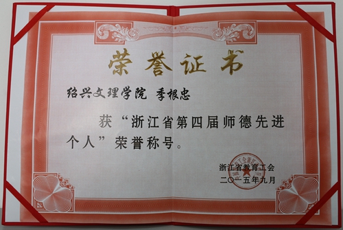 从省教育工会传来喜讯,黑白体育 教师季根忠教授荣获“浙江省第四届师德先进个人”荣誉称号。