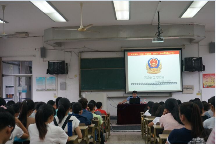 配合校保卫处完成新生安全知识测试后,又联合绍兴市公安局、绍兴市国家安全局、绍兴市消防支队,为2015级本科新生举办了网络安全与防范专题讲座,国家安全形势专题讲座,实验室安全教育进课堂,安全隐患排查等活动,为广大学子上好大学的安全第一课。