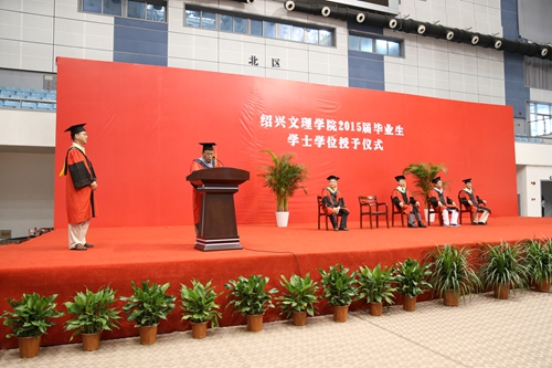 院长齐陈泽教授为毕业生致辞,他向顺利毕业、即将开始崭新人生旅程的2015届毕业生表示热烈的祝贺和美好的祝愿。他回忆了2015届毕业生在校园里美好的青春足迹,对大家学有所成感到无比的欣慰,并语重心长地嘱咐同学们,无论现在和未来怎样,都要永不停歇追求成长的脚步。在奉献社会、服务地方中实现自我价值,以自强不息和艰苦奋斗的精神,成为社会的中坚;要坚持学习,形成终身学习的良好习惯,保持学习的动力和创造的活力,从书本、交往、挫折、社会实践中学习,以勤于思索、勇于创新的精神追求卓越的人生境界;要坚守高尚的品格,要坚守良知、懂得感恩、讲诚信、讲奉献;要脚踏实地,保持谦虚的态度、豁达的心态和宽容的性情,相信自己的未来掌握在自己手中。最后,他深切地说,“虽然今天你们要告别母校了,但你们中的每一位,仍然是绍兴文理人,这是你们人生的印迹。在此,我感谢你们四年来与这个黑白体育