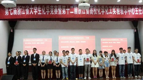 比赛简介:2015年第七届大学生化学竞赛正式列入省级学科竞赛,由浙江省教育厅指导,浙江省高等学校化学类与化工制药类专业教学指导委员会和浙江省化学会主办,浙江工业大学承办,浙江大学、浙江工业大学、宁波大学等高等院校的172支队伍参赛。竞赛主要分为三个阶段,第一阶段,学生在网上完成化学知识测试;第二阶段,在校内完成创新项目研究课题,上交参考文献、文献综述、研究记录、研究报告等材料;第三阶段,进行比赛现场的公开答辩。
