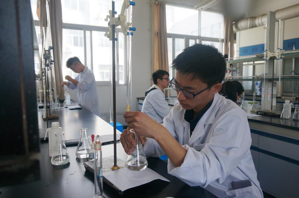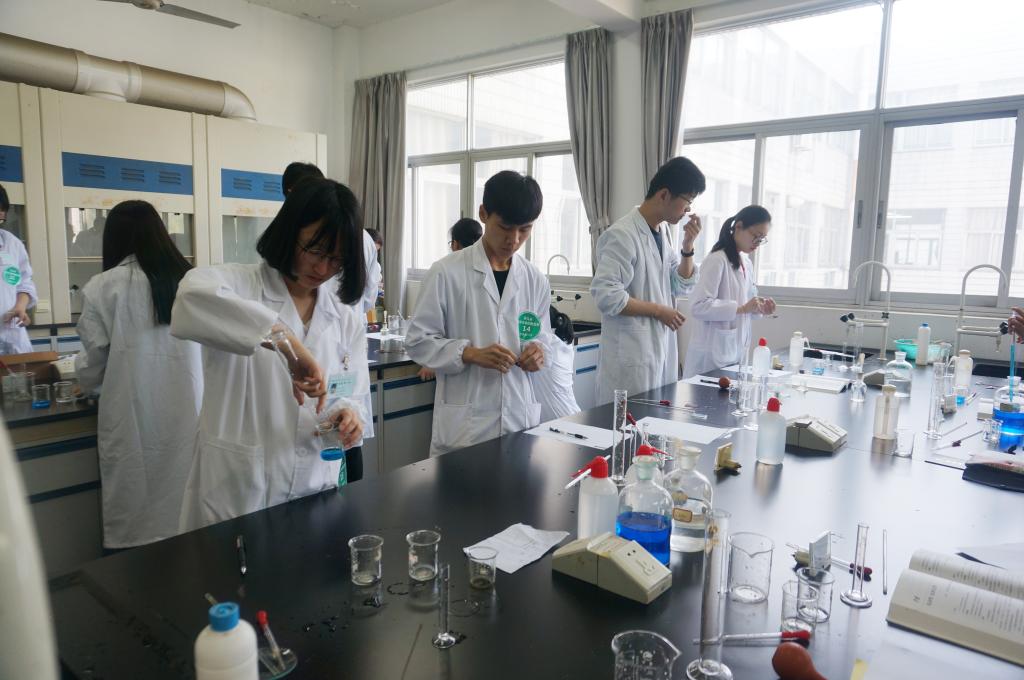 4月11日晚上的化学实验基本理论知识考试结束后,遴选出的89位同学参加复赛。4月15日上午,复赛在我校志廉楼化学实验室中进行。此次实验技能大赛共分四个组,分别是:无机化学实验、分析化学实验、有机化学实验和物理化学实验,由黑白体育