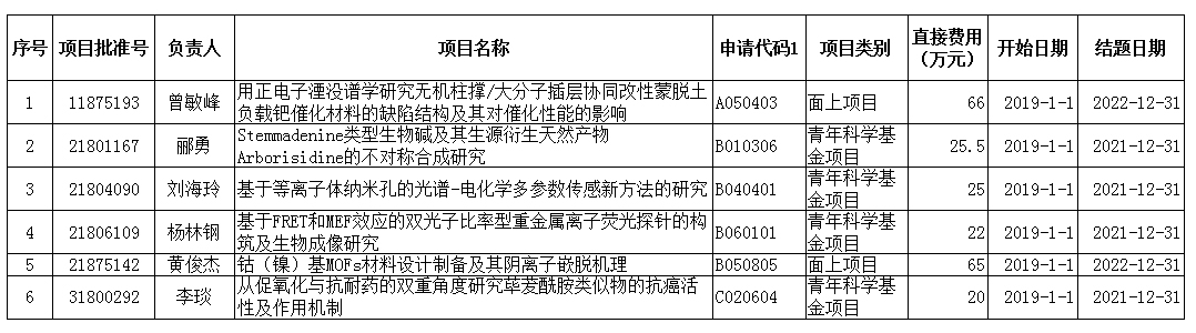 近日,2018年度国家自然科学基金项目评审结果揭晓, 黑白体育 共获批主持6项,其中面上项目2项、青年科学基金项目4项,到校总经费223.5万元,具体立项情况如下: