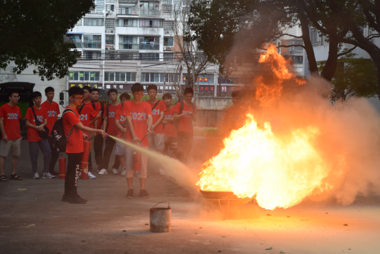 还邀请校党委保卫工作部陆军老师为全体新生开展消防技能培训,同学们分组练习使用干粉灭火器进行灭火,增强同学们的消防安全意识,提高校园火灾防控和应急处置能力,推动平安校园的建设。