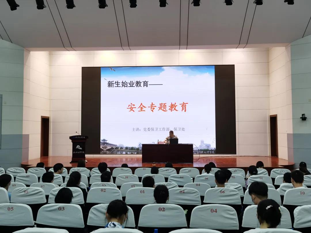 在铁城科教馆报告厅开展大学生安全知识及防诈骗专题教育与毒品预防、禁毒专题教育讲座。讲座特别邀请了绍兴市越城区涉网犯罪侦查大队副队长傅庭晖警官和校党委保卫工作部金列华部长。
