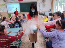 “化”说科学特色课程第一课在塔山中心小学和北海小学顺利开展。本周趣味实验课程的名称是“袅袅仙境”——神奇的干冰秀。