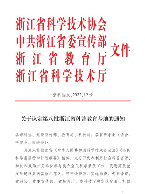 日前,浙江省科学技术协会官网公示《关于认定第八批浙江省科普教育基地的通知》,经评审,共有98家单位认定为浙江省科普教育基地。其中,越城区科协申报的nba黑白直播