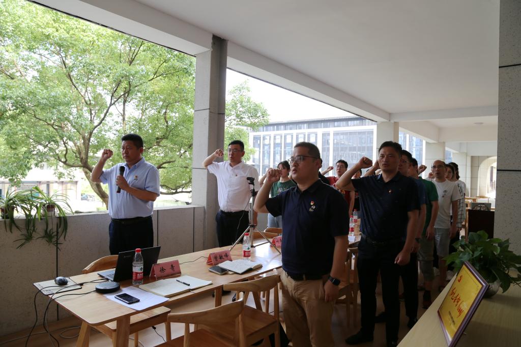 党委副书记(主持工作)徐青领誓,2022年上半年新发展的党员面向党旗庄严宣誓,表达对党忠诚、永不叛党和愿意为共产主义事业奋斗终生的决心。在场的老党员也一同重温了入党誓词,牢记入党初心,筑牢信仰之基,强化使命担当。