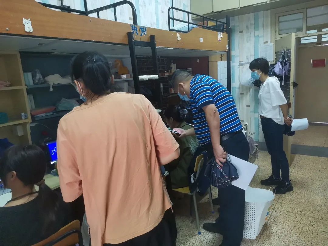 党委副书记(主持工作)徐青、副院长陶菲菲、党委副书记王颖与教研科、学生科相关老师深入本科生、研究生宿舍,开展网课巡查和学生宿舍防疫检查,对线上上课情况、宿舍防疫、卫生状况进行全面细致的检查。
