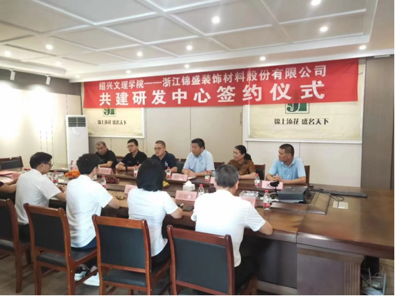 与浙江锦盛装饰材料有限公司共建研发中心签约,共同致力于新型高分子建筑绿色板材的升级与研发。