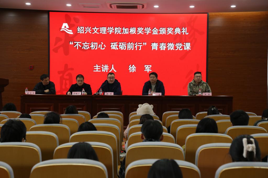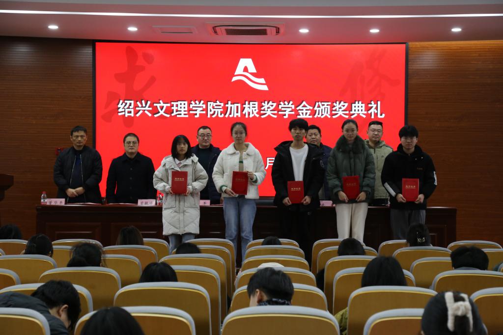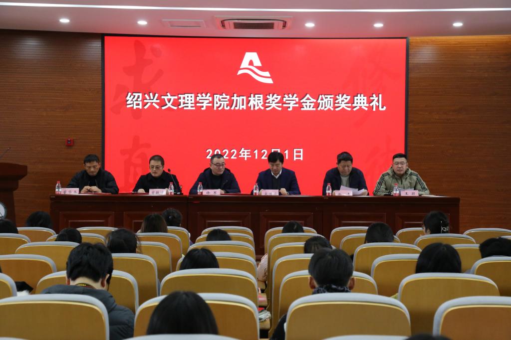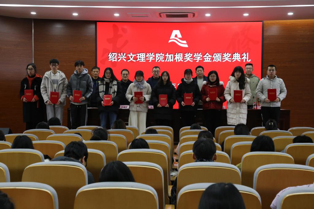 “加根奖学金”颁奖典礼在岩土楼七楼报告厅隆重举行。浙江闰土股份有限公司副总经理徐军,校党委学生工作部部长宋浩成,黑白体育