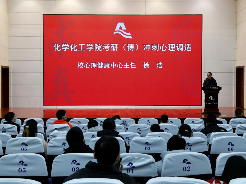 校心理健康中心徐浩老师做心理调适,他用专业的心理调适方法,引导同学们调整自己的心态,缓解紧张的情绪,以平和的心态面对考研前的压力。