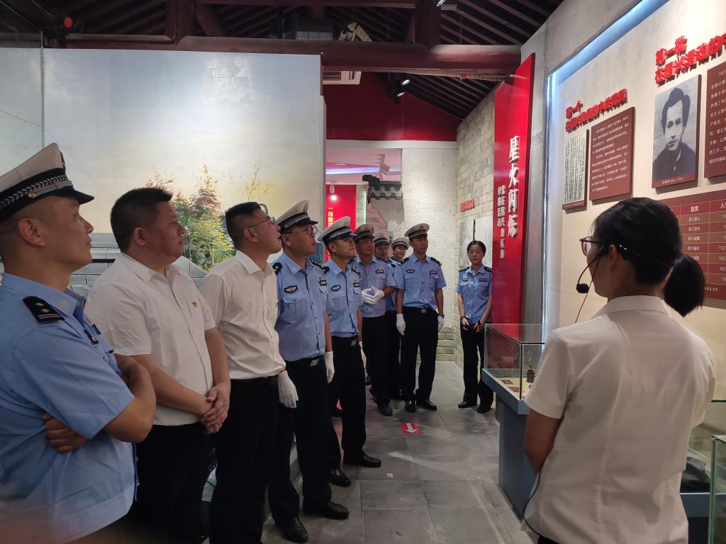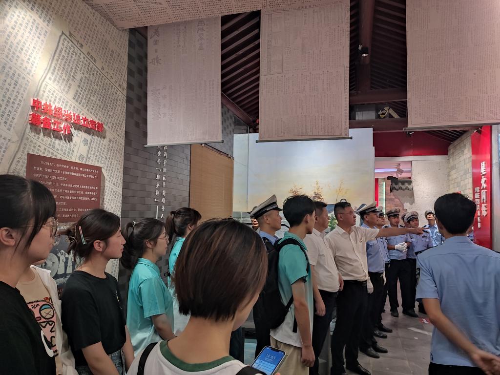 与绍兴市公安局高速公路交通警察支队一大队在中共绍兴独立支部纪念馆开展以“党建联建凝聚合力 红色领航奉献亚运”为主题的党建联学共建活动,高速交警一大队党支部书记、大队长骆国夫、一大队党支部委员、副大队长周华云、黑白体育