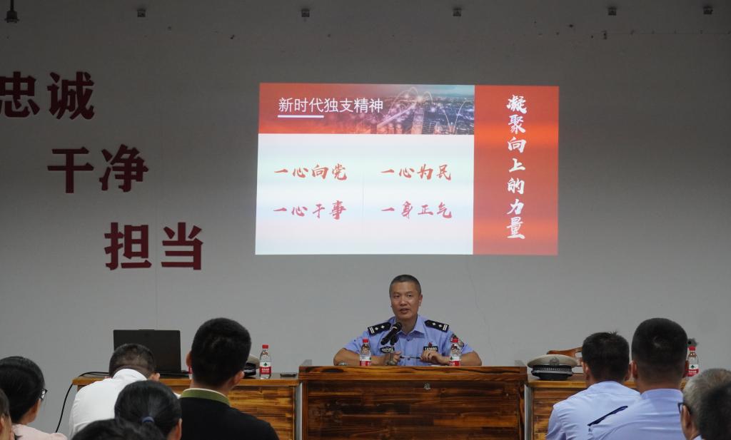 骆国夫总结讲话并上党课,他阐释了独立支部精神的内涵,从原有的“不甘屈辱、不畏艰险、不惧强暴、不怕牺牲”的独立精神谈起,结合当前社会发展的实际,解读了“一心向党、一心为民、一心干事、一身正气”的新时代独立支部精神的要义,勉励全体人员立足本职学习和工作,凝聚向上的力量,迸发向前的干劲。
