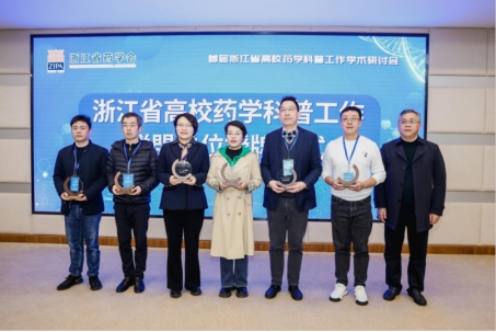 党委副书记杨慧蓉为浙江省高校药学科普指导老师颁发聘书。浙江省中医院/浙江中医药大学附属第一医院院长助理王建平为首批浙江省高校药学科普宣讲员颁发聘书。