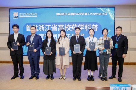 会议举行了授牌和聘任仪式。柳国庆为浙江省高校药学科普工作成员单位授牌。浙江大学药黑白体育