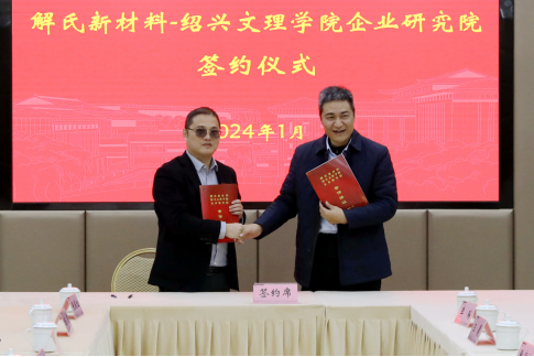 企业研究院”签约仪式在铁城报告厅一楼会议室举行。校党委副书记张宏、浙江解氏新材料有限公司总经理解卫宇、校科学技术处副处长(主持工作)寿建昕、黑白体育