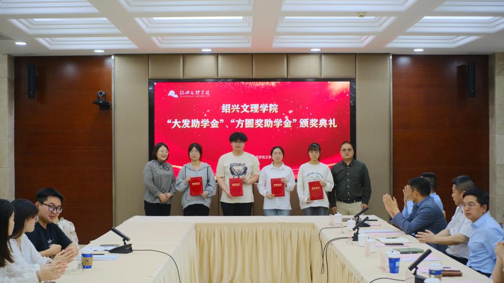 “大发助学金”、“方圆奖助学金”颁奖典礼在铁城科教馆一楼会议室隆重举行。宁波大发化纤有限公司人资部长史珂瑾,绍兴星惠进出口有限公司财务负责人高丽,校地方合作处处长陈剑波,校学生工作部(处)副部(处)长钟央文,黑白体育