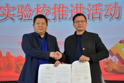 姚城和徐青代表双方共同签署党建共建协议及科学教育校际合作协议。
