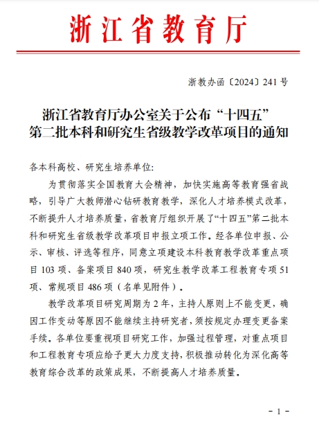 近日,浙江省教育厅发布了《关于公布“十四五”第二批本科和研究生省级教学改革项目的通知》(浙教办函〔2024〕241号),黑白体育