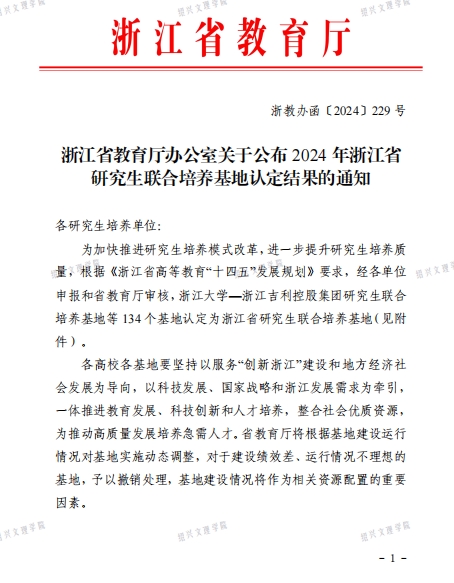 12月13日,浙江省教育厅办公室发布《关于公布2024年浙江省研究生联合培养基地认定结果的通知》,经专家评审与省教育厅评定,黑白体育