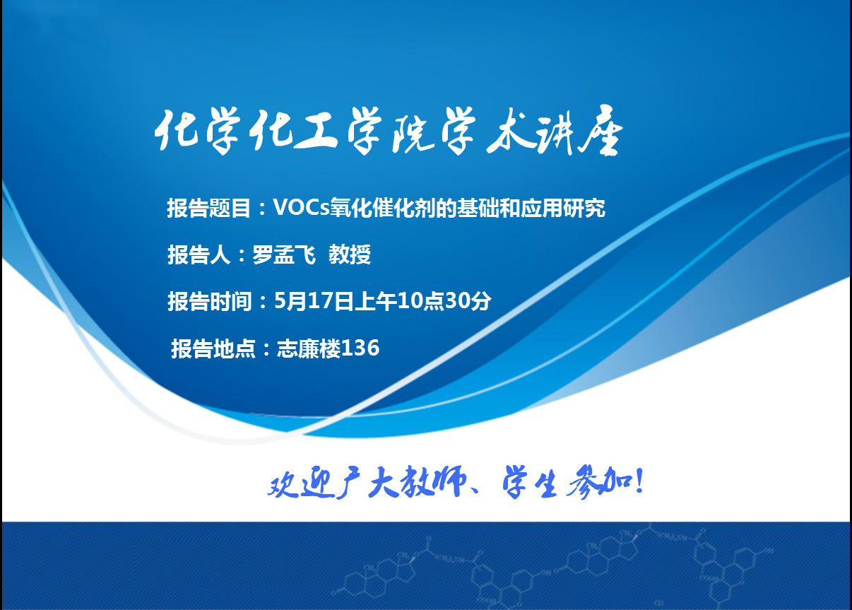 学术讲座通知——VOCs氧化催化剂的基础和应用研究