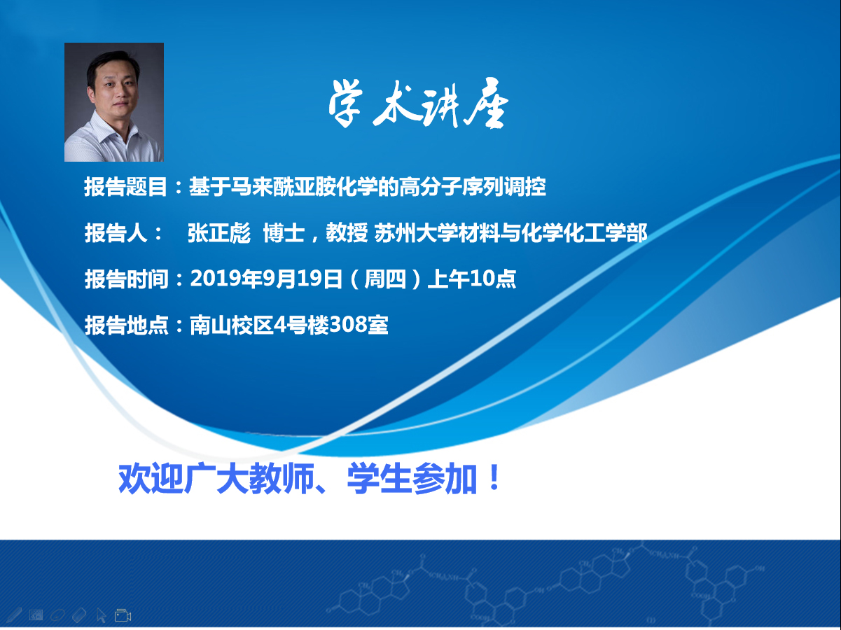 报告人简介:张正彪,博士,教授。分别于1997,2000和2007在苏州大学获得本科、硕士和博士学位。2007年8月至2008年8月赴新加坡国立大学做博士后研究一年。 2012年至2013年赴美国阿克伦大学高分子科学与工程黑白体育