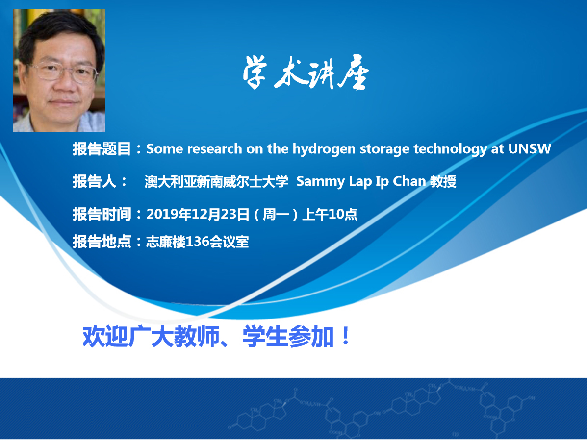 学术讲座:Some research on the hydrogen storage technology at UNSW