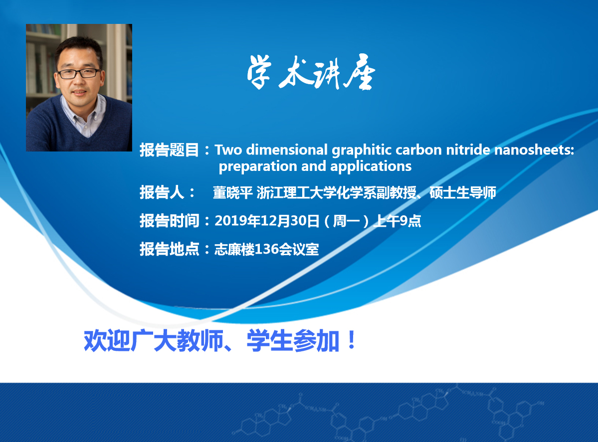 学术讲座:Two dimensional graphitic carbon nitride nanosheets: preparation and applications