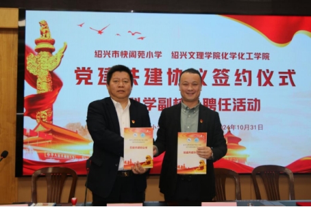 近日,化学化工学院党委与绍兴市快阁苑小学党建共建协议签约仪式暨科学副校长聘任活动在快阁苑小学报告厅内举行。