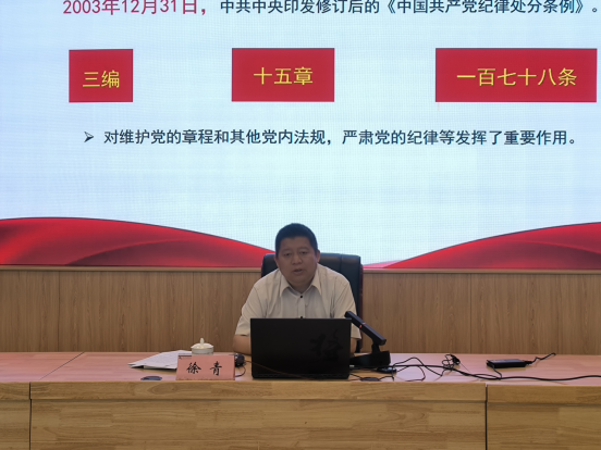 徐青结合当前党纪学习教育主题,全面解读了新修订的《中国共产党纪律处分条例》重点内容,介绍了《条例》的修订背景、重要意义及学习要求,以学生违纪警示案例进一步阐述了违纪违规所带来的严重后果。他强调,青年学生要严格遵守法律法规和校纪校规,树立正确的人生观、世界观和价值观,做知纪、明纪、畏纪、守纪的新时代青年。