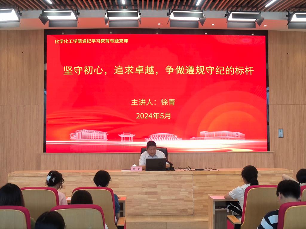 5月24日,学院党委书记徐青在风则江大讲堂107报告厅作题为“坚守初心,追求卓越,争做遵规守纪的标杆”专题党课,全体学生党员和学院党校发展对象培训班学员参加党课学习。