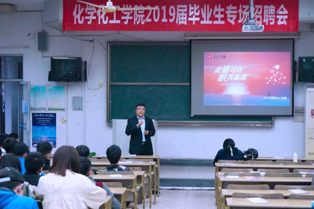 然后,各家企业依次进行宣讲。药明康德是国际领先的开放式能力与技术平台公司,为全球制药及医疗器械等领域提供从药物发现、开发到市场化的全方位一体化的实验室研发和生产服务。化学服务平台作为药明康德新药开发有限公司最早成立的研发部门,开创了中国CRO化学服务的先河,见证了药明康�18年的成长历程。此次为药明康德第一次来我院招聘应届毕业生,招聘我院各专业的优秀本科和硕士毕业生。阿斯利康是一家科学至上的全球性生物制药企业,专注于研发、生产及营销处方类药品,�1993年进入中国以来,阿斯利康坚持科学至上,注重创新,以满足中国不断增长的医疗需求,实现“开拓创新,造福病患,成为中国值得信赖的医疗合作伙伴”这一宏伟愿景。石药集团恩必普药业有限公司的主营产品恩必普软胶囊(主要成分为丁基苯酞)是我国脑血管病治疗领域第一个拥有自主知识产权的国家一类新药。恩必普药业也因此成为我国第三个拥有国家级一类化学新药的生产企业。正大天晴药业,一个年轻的企业。四十多年的发展,没有给他留下太多的沧桑和岁月留痕,青春勃发的笑靥里处处洋溢着她的壮志和豪情!广东德美精细化工股份有限公司是以纺织印染助剂为主,兼营其他精细化学品的股份制公司,具有自主研发、生产、销售和提供专业服务的能力。产品产销量历年来一直居于同行业前列。杭州中美华东制药有限公司的前身是创建于1952年的浙江制药厂,后更名为杭州制药二厂、杭州华东制药厂�1992年在华东制药厂的基础上组建了杭州华东医药集团公司。目前已发展成为拥有一家上市公司、五家中外合资企业、若干家控股医药企业的集科、工、贸于一体的大型医药企业集团�