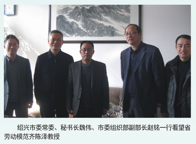 绍兴市委常委、秘书长魏伟、市委组织部副部长赵铭一行看望省劳动模范齐陈泽教授
