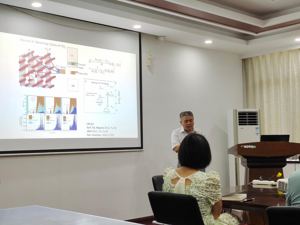 86日报告内容为:在纳米尺度范围下,材料的比表面大,表面失配和低配位原子必然存在。纳米材料表面缺陷类型十分丰富,包括表面原子失配、表面极化、表面非晶化、表面掺杂与杂质吸附、表面空位及复合空位等,这些缺陷对半导体材料的电子结构、光谱吸收及光生电子空穴的激发、迁移和复合的过程均有重要的影响。这些缺陷由于具有微区化,电子态密度极低特点,对于这些表面缺陷缺乏有效的研究手段,更谈不上有效控制。因此,目前纳米能源材料的研究与开发面临一个最大挑战便是如何有效的监测和控制材料的缺陷类型、缺陷浓度及分布。本次报告将介绍BiOX中的应力及空位、TiO2中氧空位的形成及其对电子结构和性能的影响及规律,Fe3GeTe2中Fe空位对重费米子行为的影响。报告引起了广大师生的热烈反响。
