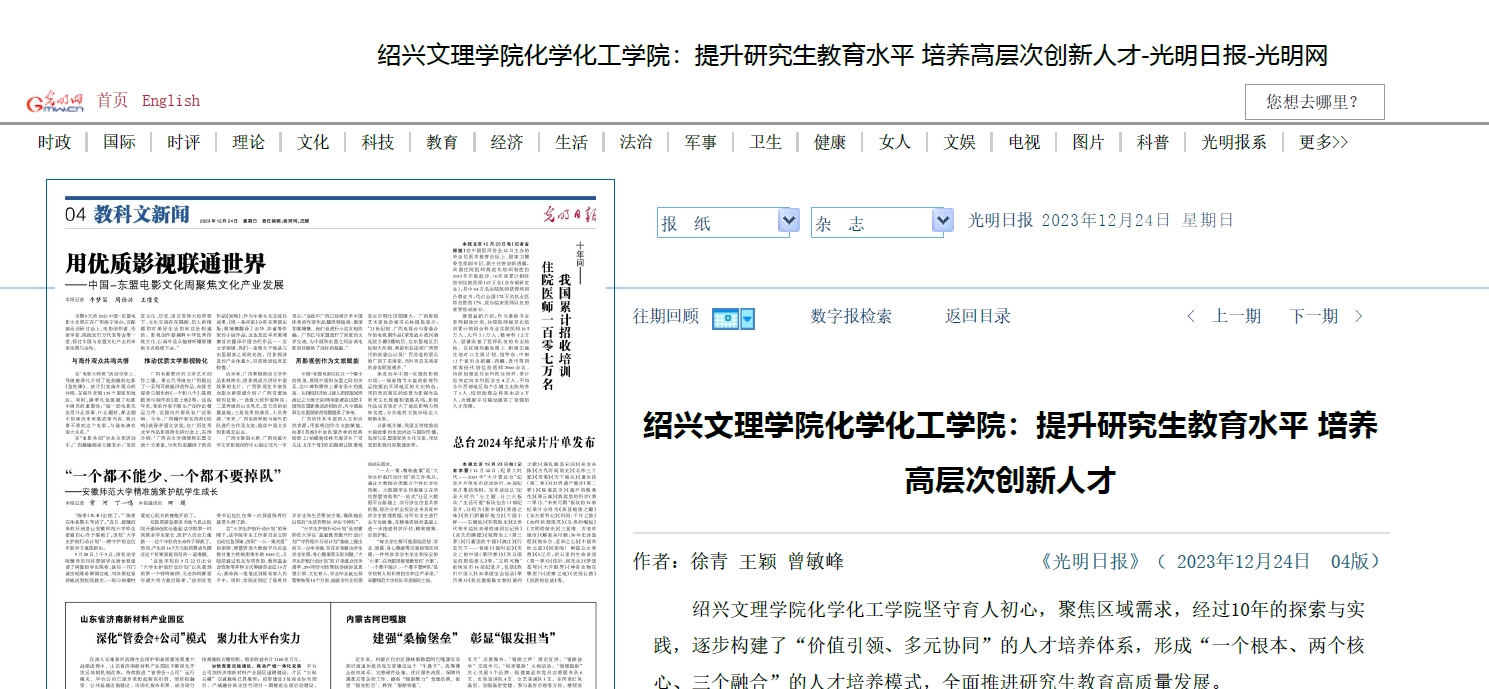 《光明日报》报道黑白体育 提升研究生教育水平 培养高层次创新人才